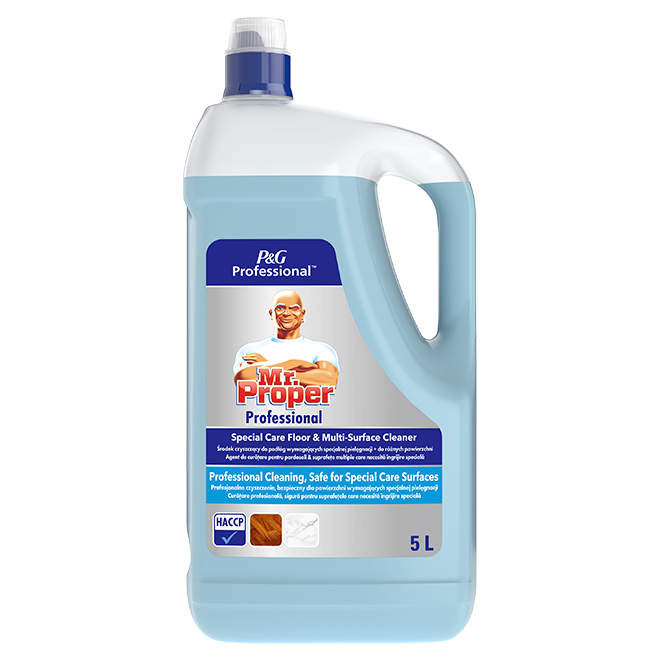 Mr. Proper univerzális tisztítószer padlóra és érzékeny felületekre. Az innovatív technológiának köszönhetően hatékonyan eltávolítja a szennyeződéseket és kiváló eredményeket ér el az érzékeny felületek tisztításánál, mint márvány, természetes kő és kerámia. Használható higítva és higítatlanul is. Higított termék használata esetén nem szükséges a felület öblítése. Alkalmas automata padlótisztító gépekhez is. Hosszan tartó fényt, friss és kellemes illatot hagy maga után. Egy 5 literes palack 83 vödörnek felel meg.