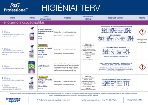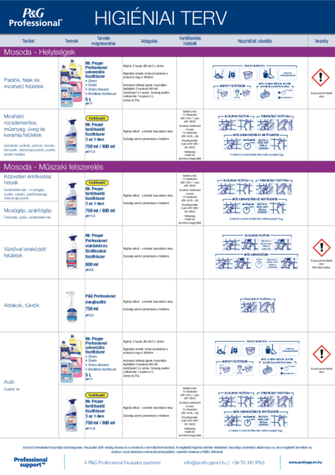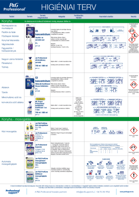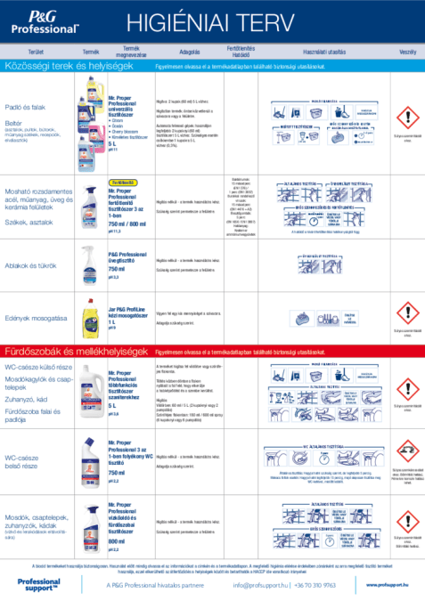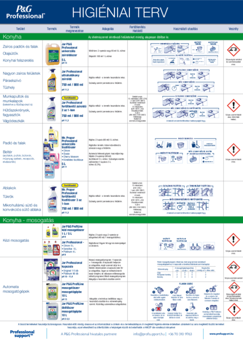 Örömünkre szolgál, hogy az üzeme takarításához a biztonságos, egyszerű és a P&G Professional hatékony rendszerét választotta. Ez a rendszer a hatékony mosogatás, zsíroldás és egyéb szennyeződések eltávolítása érdekében a Jar Professional és a Mr. Proper Professional termékek erejét hozza el.