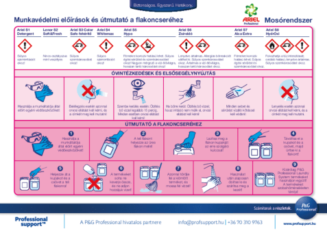 Javasoljuk ezeket az anyagokat a termékek/takarítási területek közelébe helyezni úgy, hogy azok jól láthatóak legyenek. Egyéb termékekhez (pl. mosás kategóriából) biztonsági és termék adatlapokat talál az e-shop rovatban, az egyes termékek részleteiben.